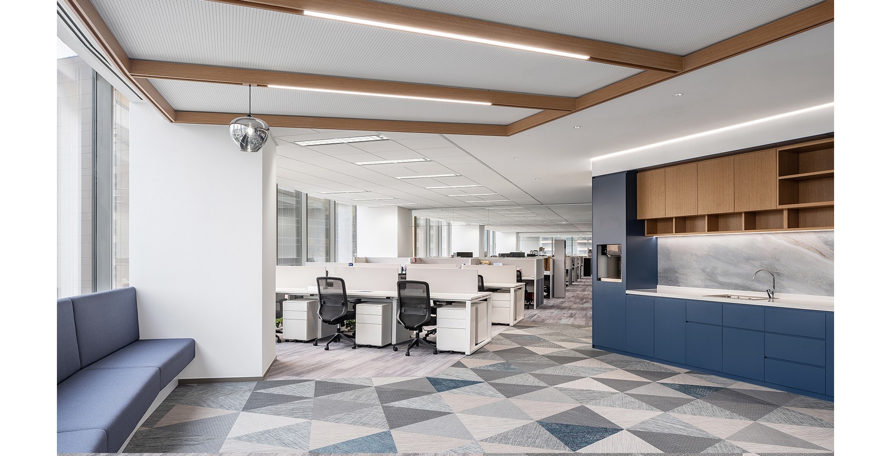 英途咨詢辦公室設(shè)計(jì)裝修前廳使用木色和紅色的搭配,木色帶來了溫暖與自然感,在客戶進(jìn)入公司時(shí)留下親和且充滿活力的第一印象。